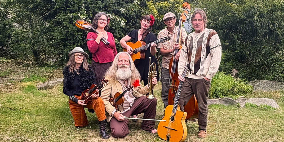 The folk violin of Rob Diggins with the delightfully eccentric, one-of-a-kind acoustic mash-up swing and jazz band: HOBOHEMIA!